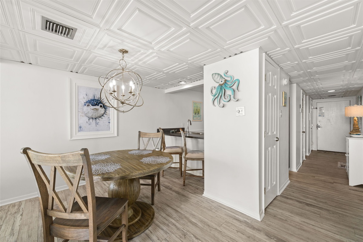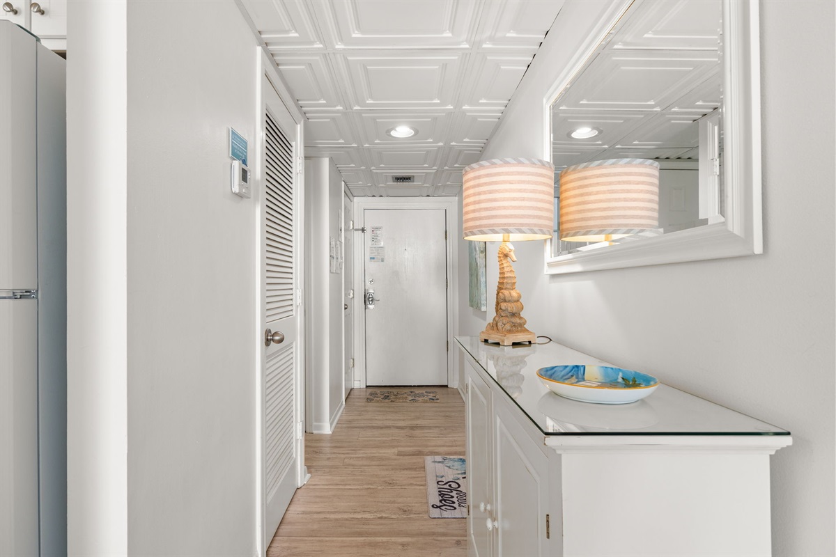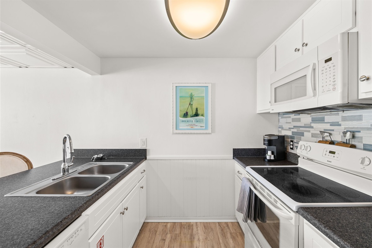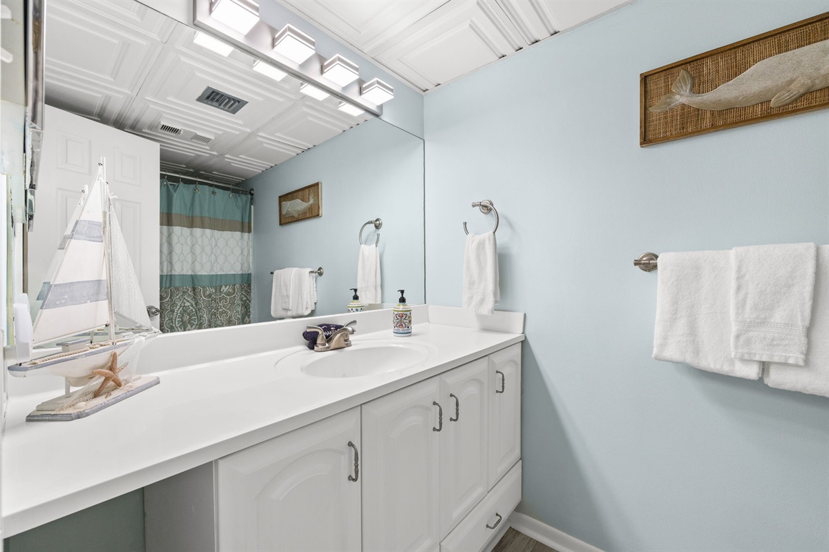 This recently renovated and beautifully decorated condo sleeps four to six with a king in the master bedroom and a queen sleeper sofa plus a double sleeper loveseat in the living room. The living room features comfy furniture, a Smart TV, and an amazing view of the Gulf that you can soak up from within the condo or from the private balcony. A fully-equipped kitchen is ready for any meals, drinks or snacks, plus a washer and dryer and free wifi are offered for the ultimate in convenience. We also have a twin rollaway bed if needed. Maximum occupancy is six (6).