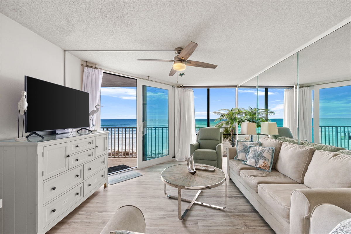 1 Bedroom • 2 Bathrooms 2 Baths • Sleeps 4-6Welcome to PCB Sugar Shores, a stunning 1 bedroom, 2 bath gulf-front condo located on the easy-access second floor of the Windward building at Edgewater Beach and Golf Resort in Panama City Beach.